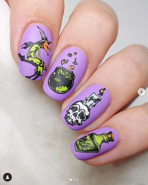 Trick or treat? Spooky patterns, scary images, haunted mansions, ghost, skeleton, witches and vampire nail art desings!