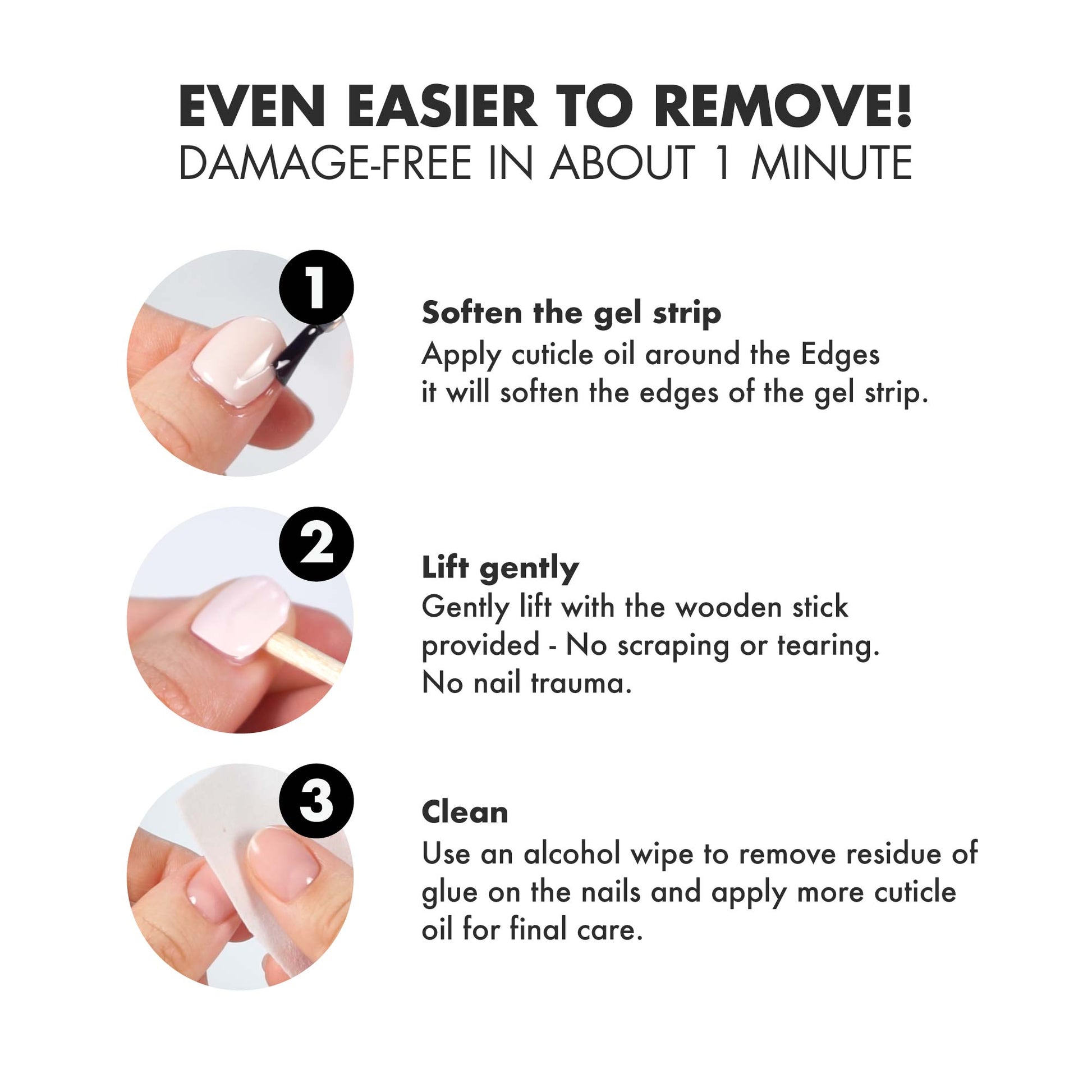 No scraping. No tearing. No nail trauma.