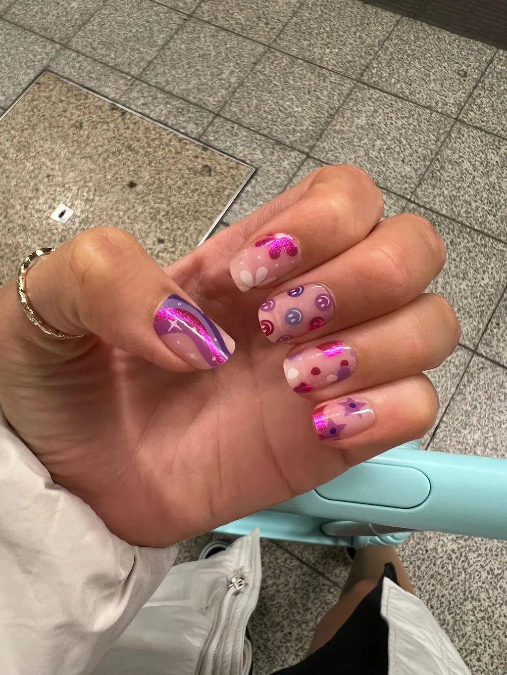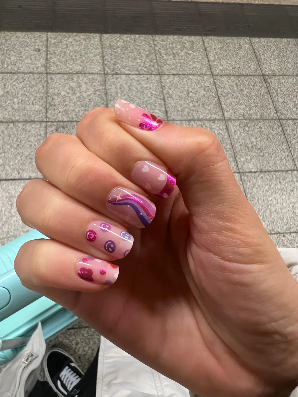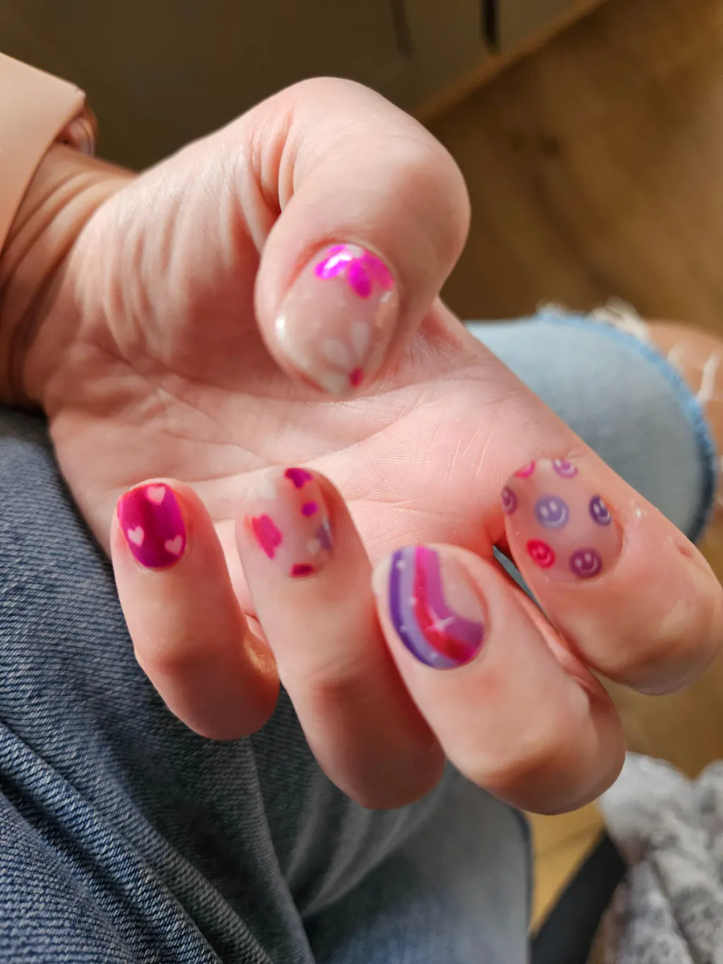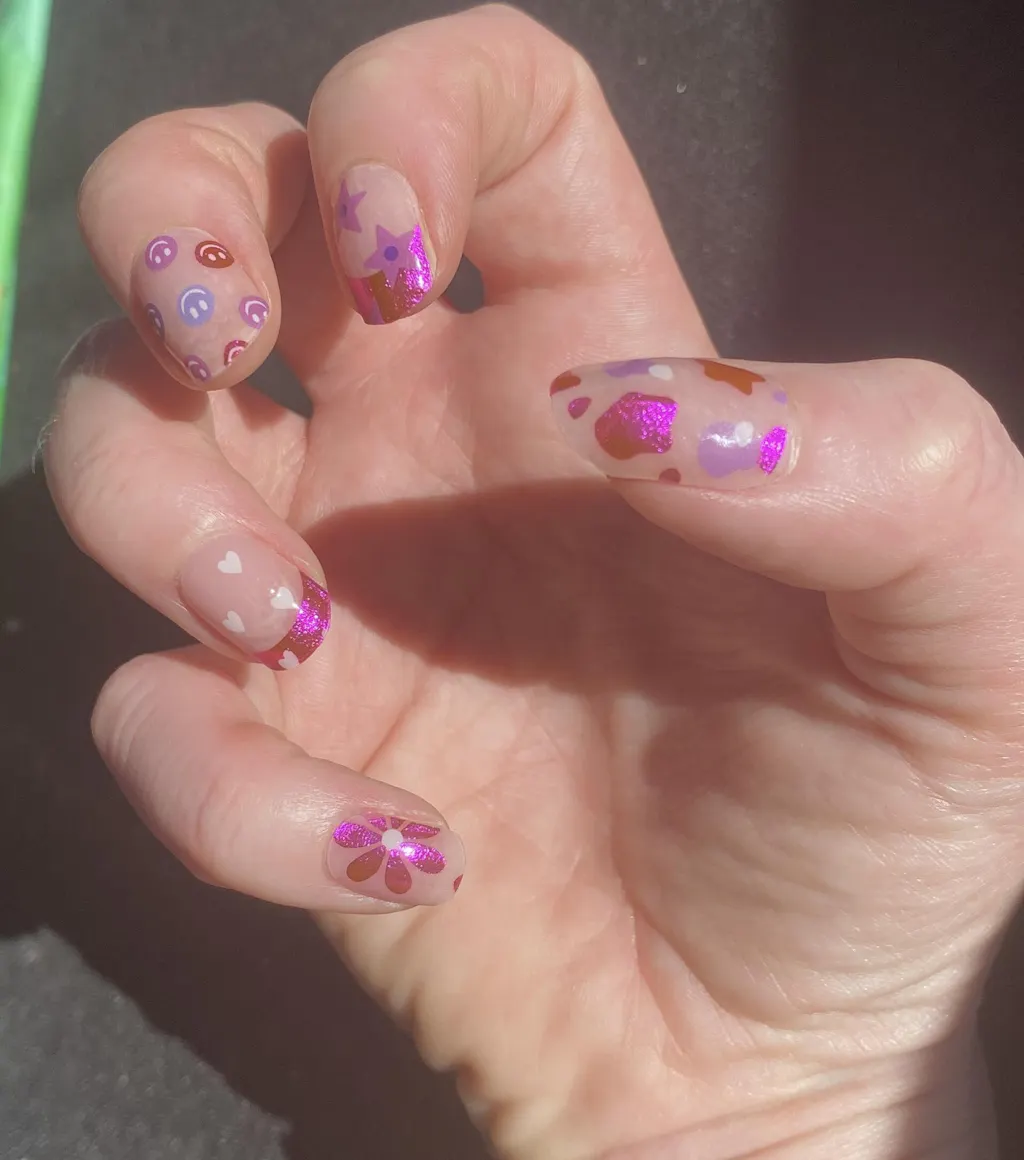 We are thrilled to announce our latest nail artist collaboration with the talented nail technician Janine Orpen, also known as @nailsbyjanine.x ! Janine has recreated her most popular manicure designs in gel nail stickers, bringing her unique and vibrant style straight to your fingertips. This exclusive collection features three stunning designs: a playful, colorful mix of smiley faces and psychedelic patterns; a dreamy, whimsical blend of rainbows and flowers; and a chic, contemporary combination of purple hues with hearts and sparkles. These gel strips capture Janine's artistic flair and attention to detail, making it easy for you to achieve salon-quality nails at home. 💅🌈