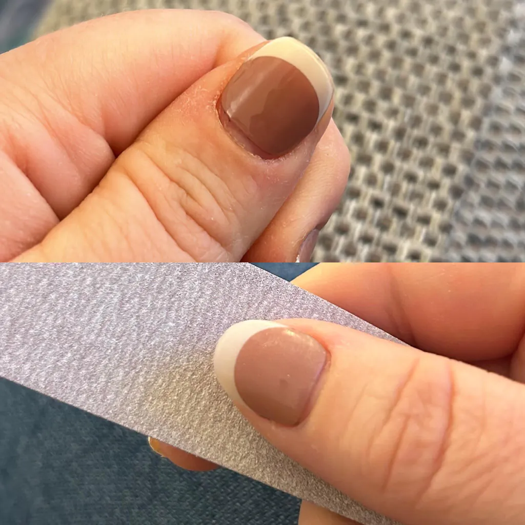 You can use a pair of scissors or nail clippers to trim any excess and file it for a smooth finish!