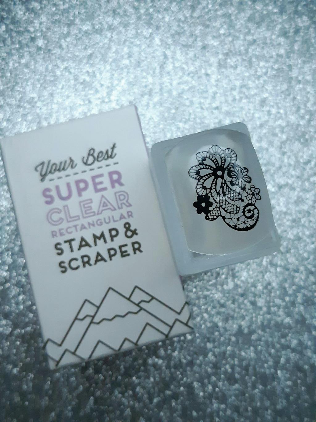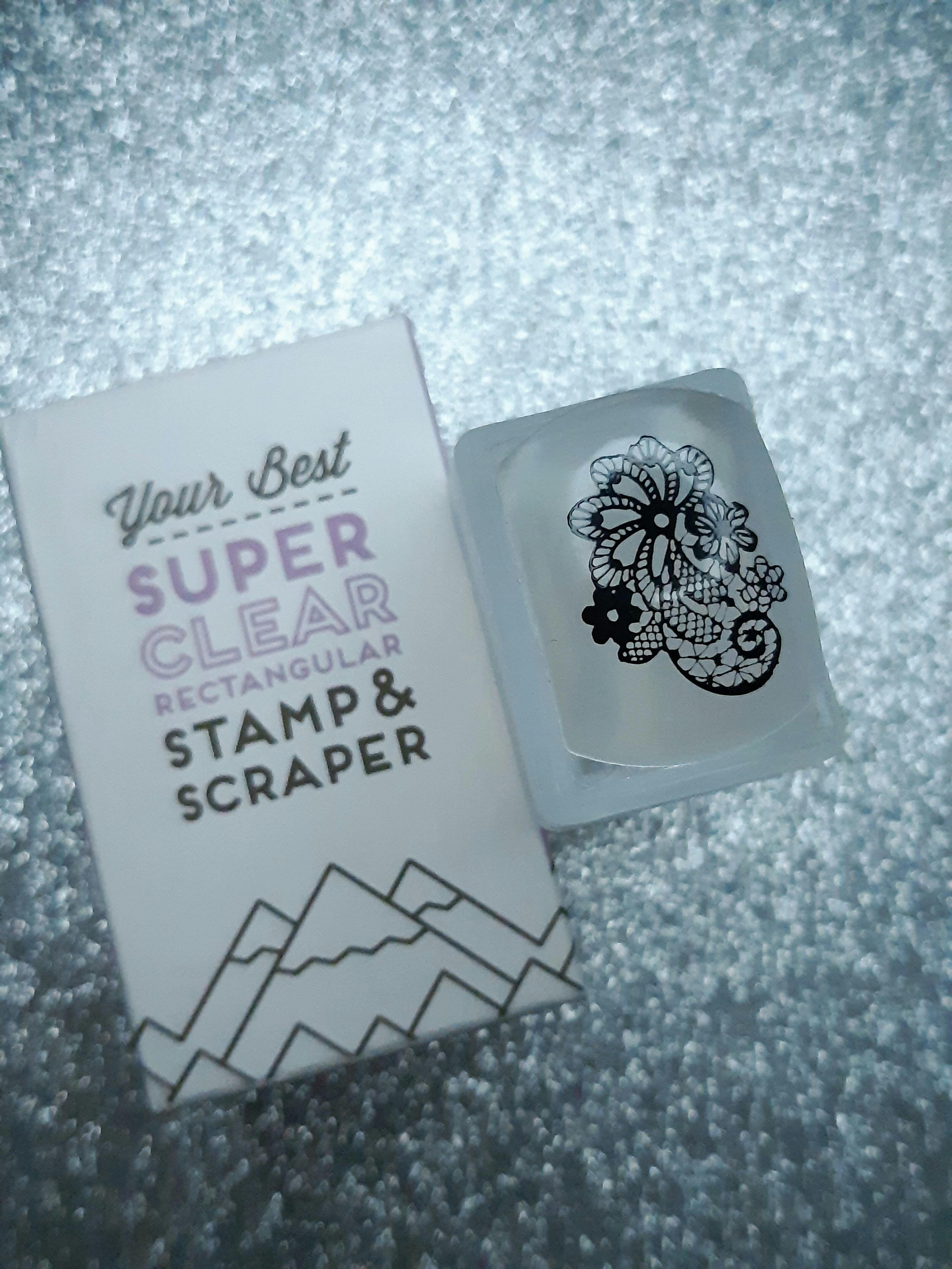 The 3 in 1 ✦ Super Clear Rectangular Stamper & Scraper features a see-through rectangular prism with a transparent silicone head that delivers full visibility to where you’re stamping.