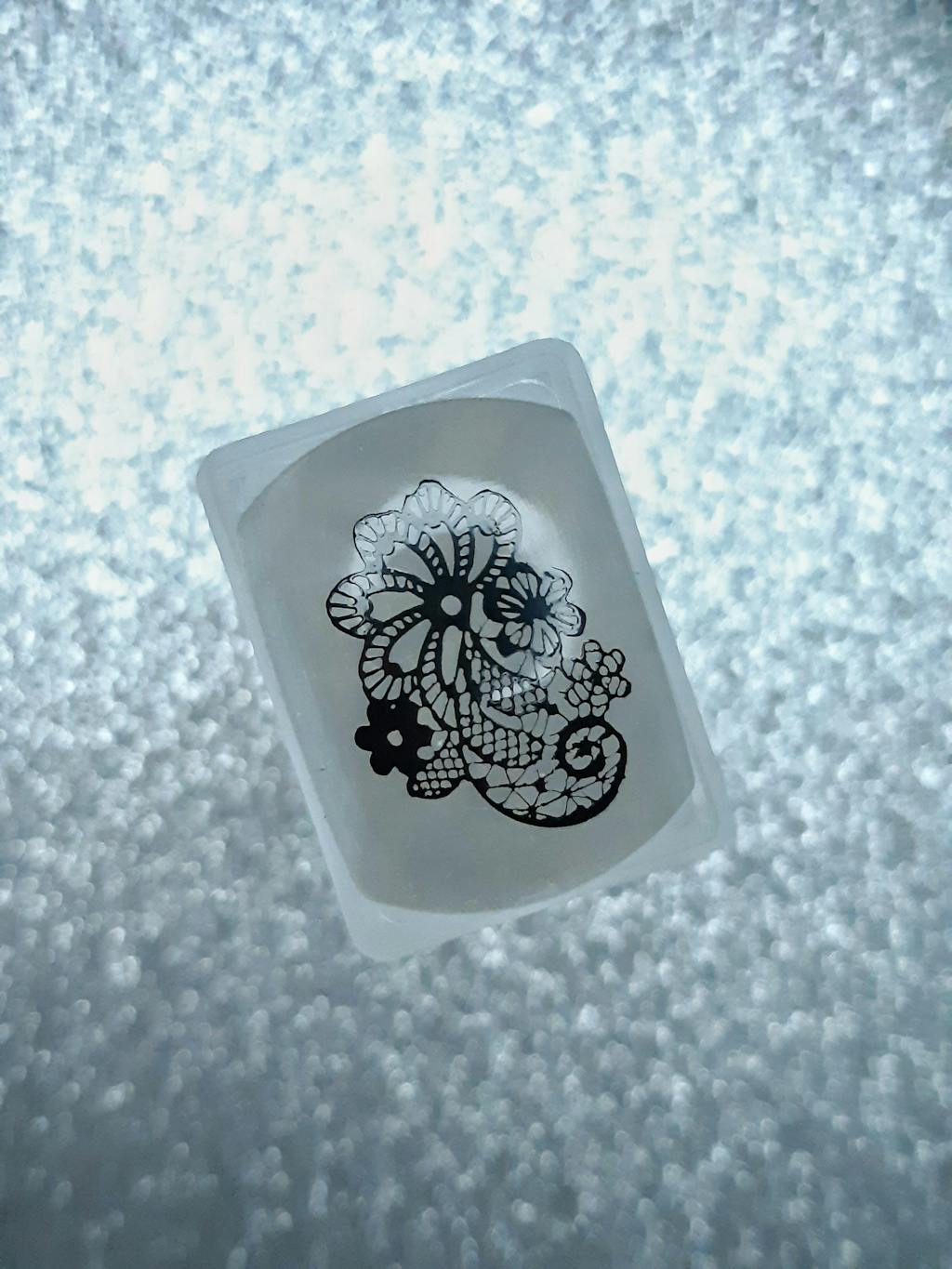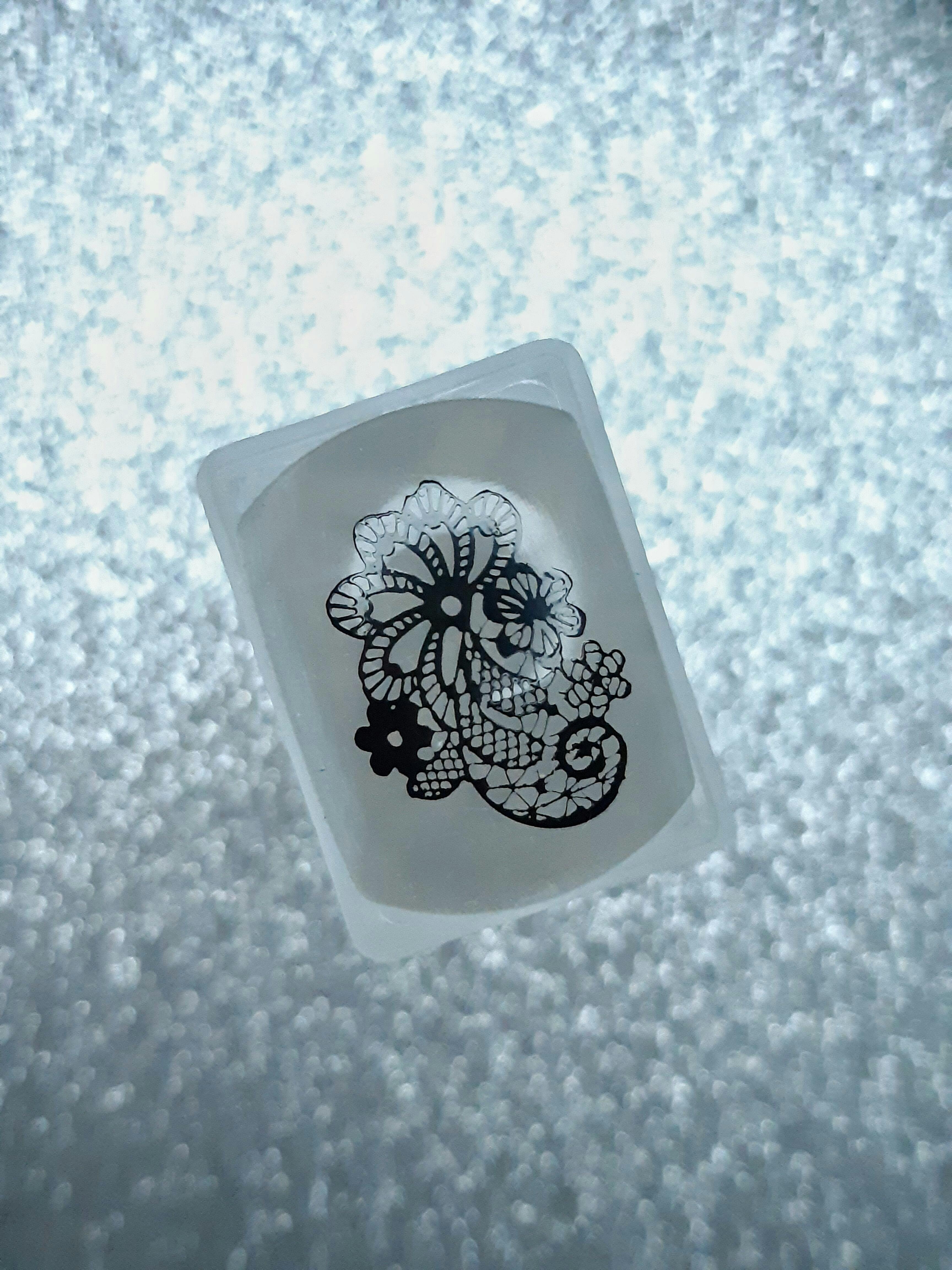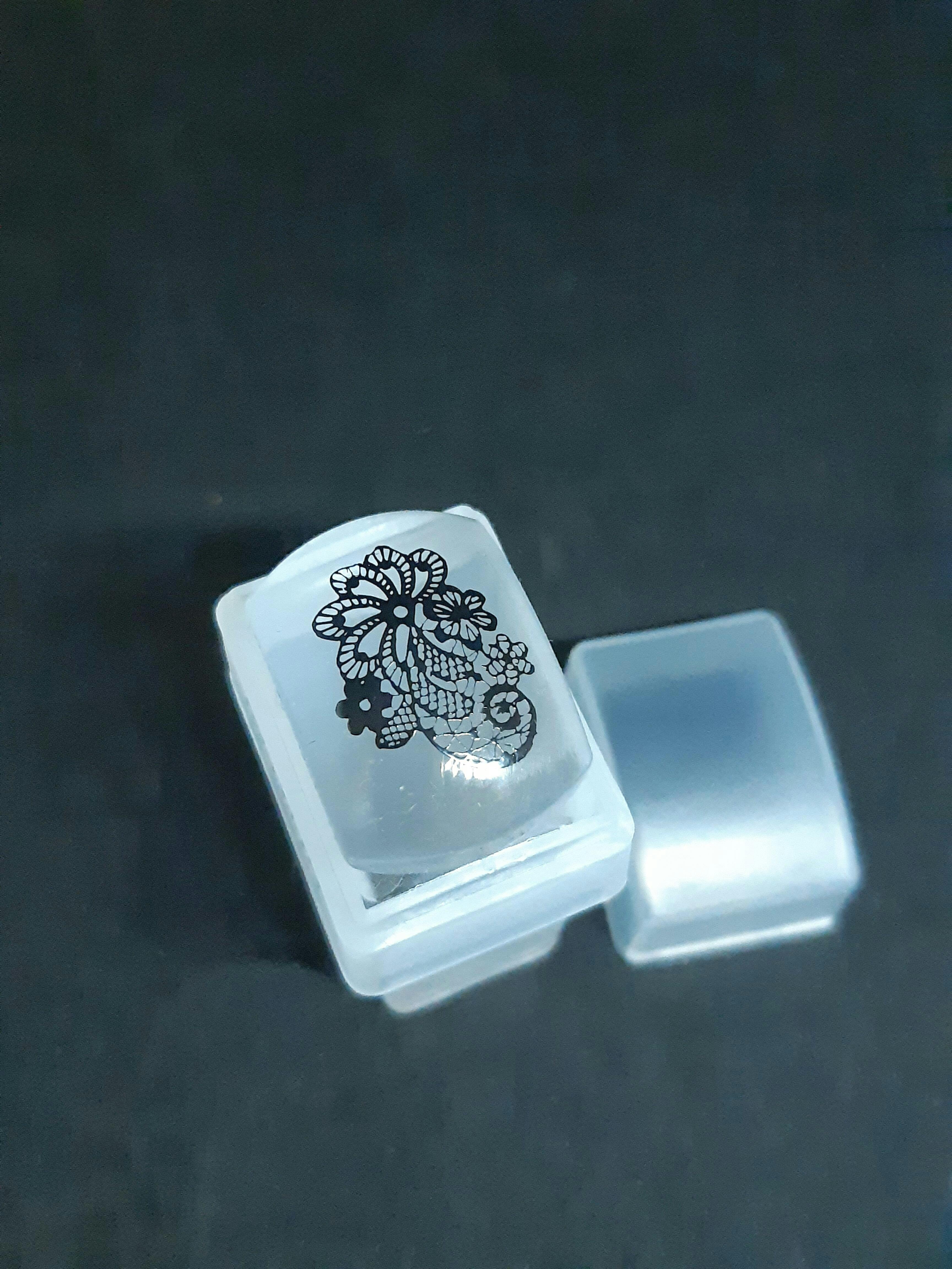 ✦ You can use our stampers for reverse stamping. Pick up your design, apply clear top coat and let it dry for a few minutes, colour it using thin nail art brushes and nail polish, and stamp the final design onto your nail!
