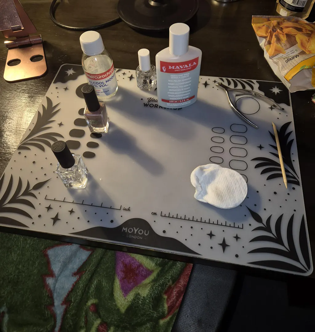 PROTECTION: do you nails on top of the mat to avoid staining your surfaces with any nail polish or harsh chemicals.
